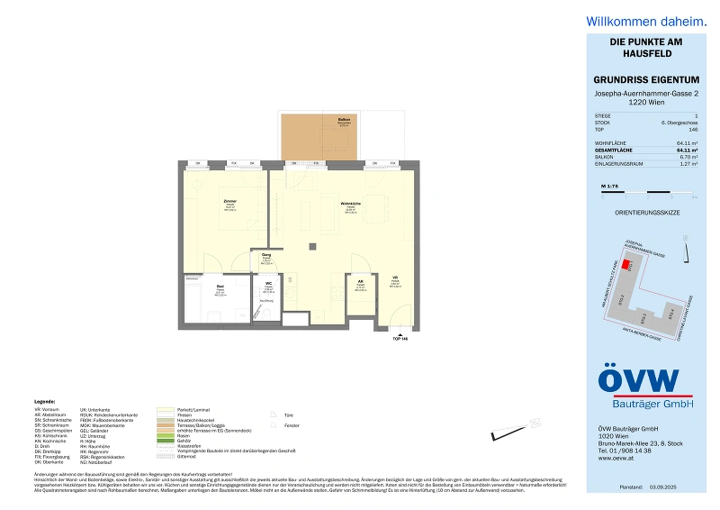 | Objekt | Stiege 1 / Top 1.46 Oberes Hausfeld F1, 1220 Wien |