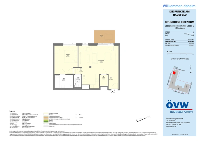| Objekt | Stiege 1 / Top 1.64 Oberes Hausfeld F1, 1220 Wien |