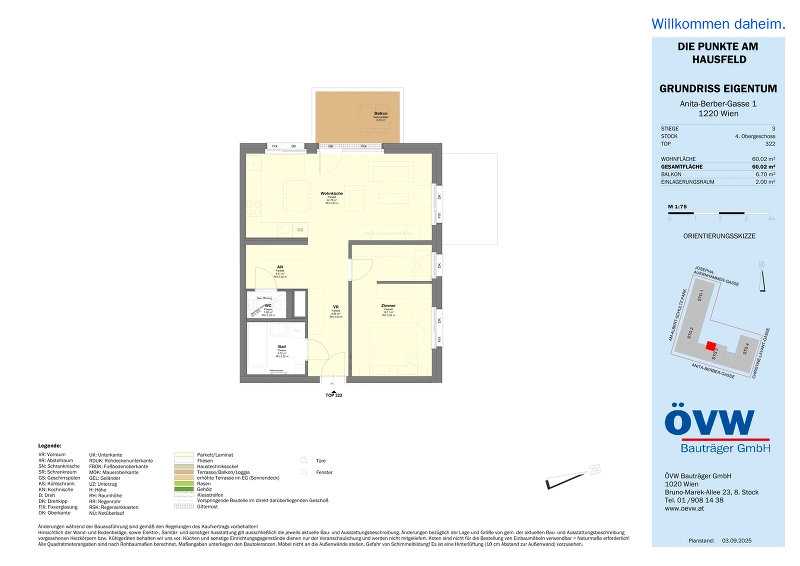 | Objekt | Stiege 3 / Top 3.22 Oberes Hausfeld F1, 1220 Wien |