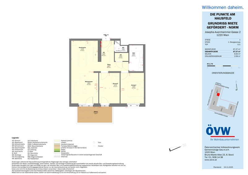 | Objekt | Stiege 1 / Top 1.11 Oberes Hausfeld F1, 1220 Wien |