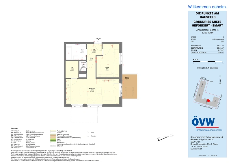 | Objekt | Stiege 3 / Top 3.21 - SMART Oberes Hausfeld F1, 1220 Wien |