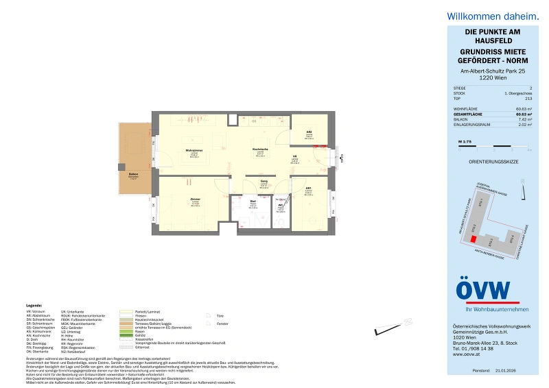 | Objekt | Stiege 2 / Top 2.13 Oberes Hausfeld F1, 1220 Wien |