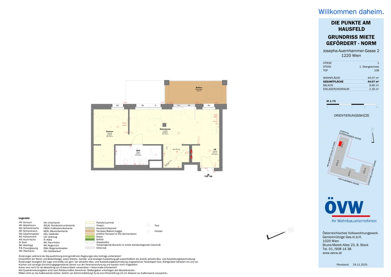 | Objekt | Stiege 1 / Top 1.08 Oberes Hausfeld F1, 1220 Wien |