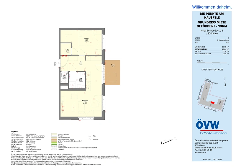 | Objekt | Stiege 3 / Top 3.11 Oberes Hausfeld F1, 1220 Wien |