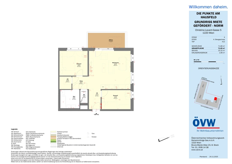 | Objekt | Stiege 4 / Top 4.12 Oberes Hausfeld F1, 1220 Wien |