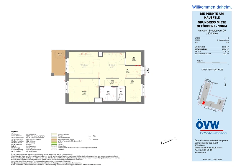 | Objekt | Stiege 2 / Top 2.18 Oberes Hausfeld F1, 1220 Wien |